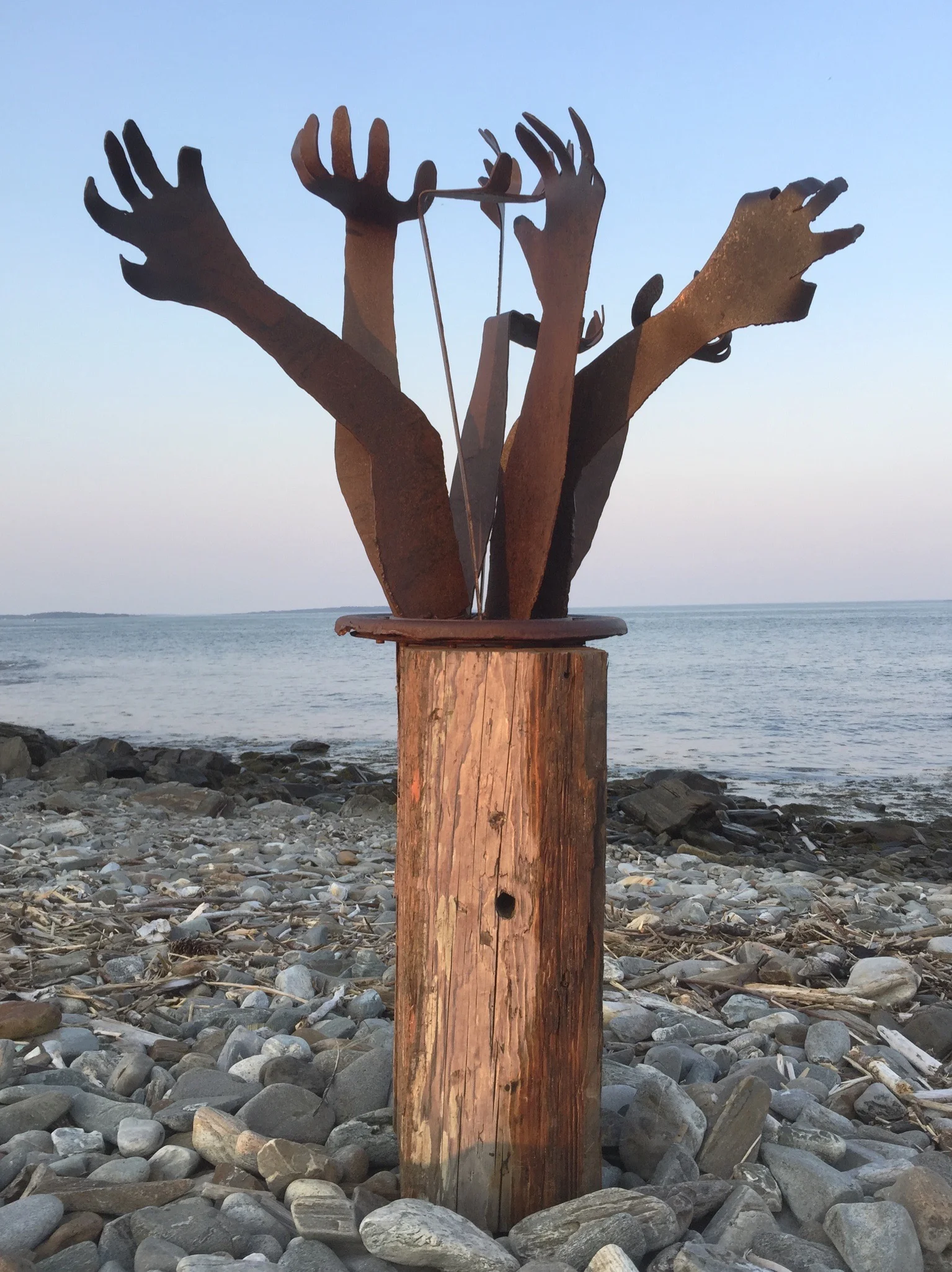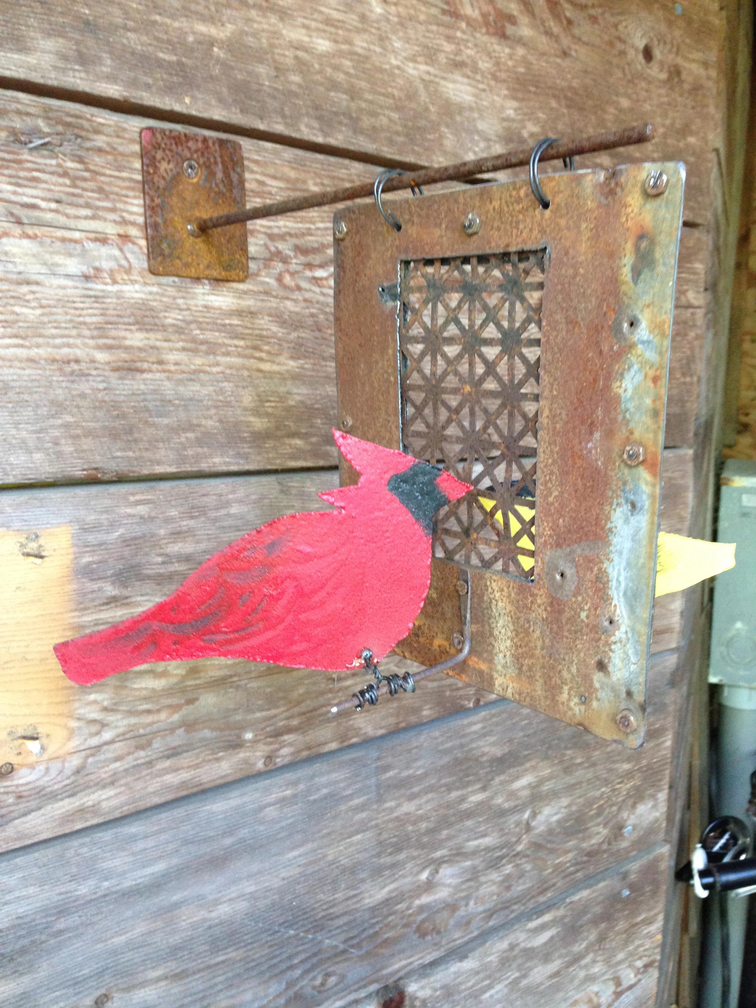 This site has photos of a variety of my work, many of which are already sold. Please feel free to contact me about commissions if you see something you like. Some pieces are one off, others can be replicated. Thank you for your interest in my work. You can also find me on Instagram @steelcardinals. There are several large pieces in yards/gardens around Peaks Island. Keep your eyes open-you may come upon one!